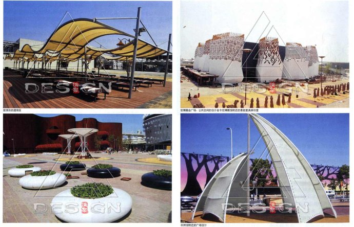 相對(duì)世博展館來(lái)說,上海世博園區(qū)的公共空間是配角,但也一樣不乏獨(dú)具匠心的設(shè)計(jì)。設(shè)計(jì)者選用抽象抽象的動(dòng)漫手法,通過提取五大洲的個(gè)性進(jìn)行空間載體表達(dá),從而令漫步世博園區(qū)的游客,在公共空間也能欣賞到五大洲不同風(fēng)格的美景。